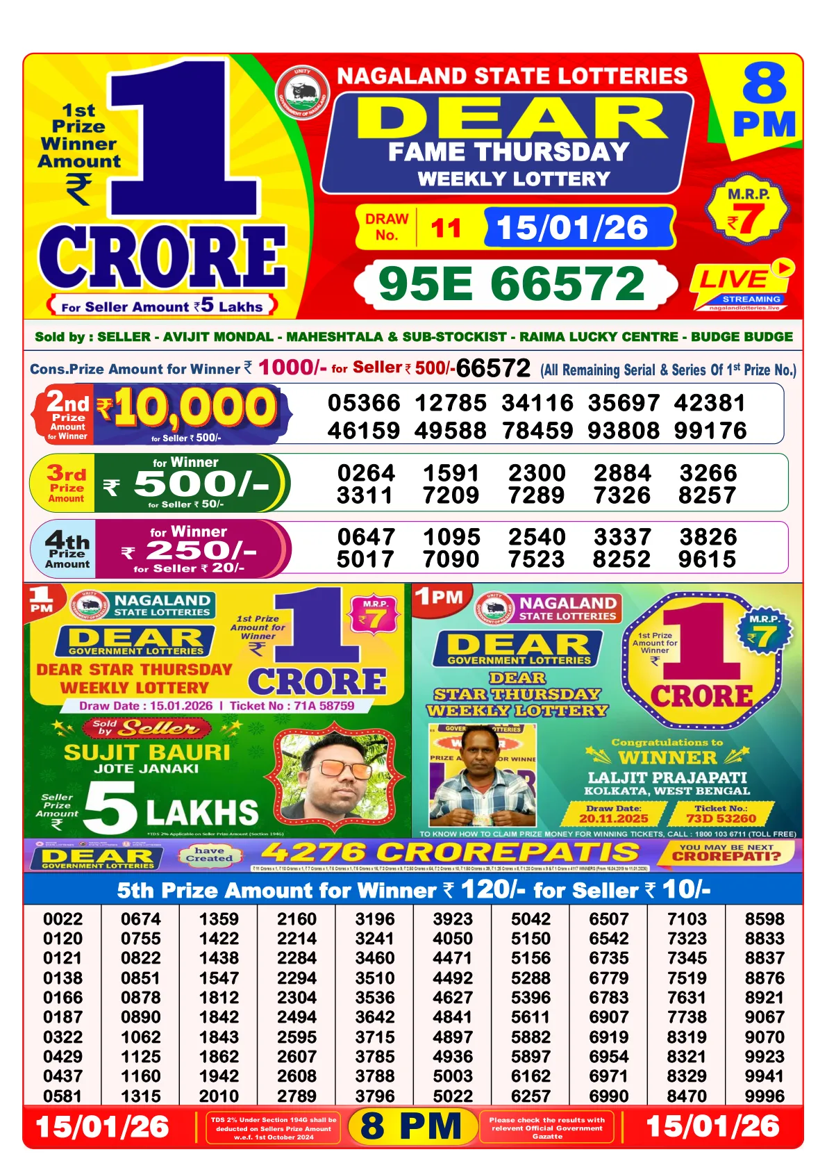 On the crisp morning of January 15th, 2026, anticipation reached fever pitch across the nation as the results for the much-awaited Nagaland State Lottery's 'Dear Fame Thursday' draw were announced. Dreams were realized, and the patterns of luck once again captivated players and observers alike.