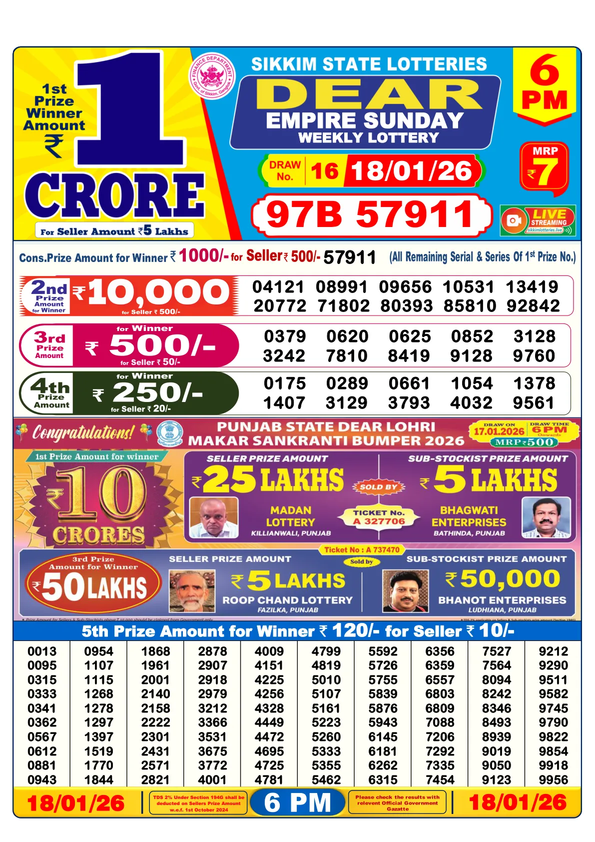 Lottery Sambad Old Result - 18/01/2026 | 6PM
