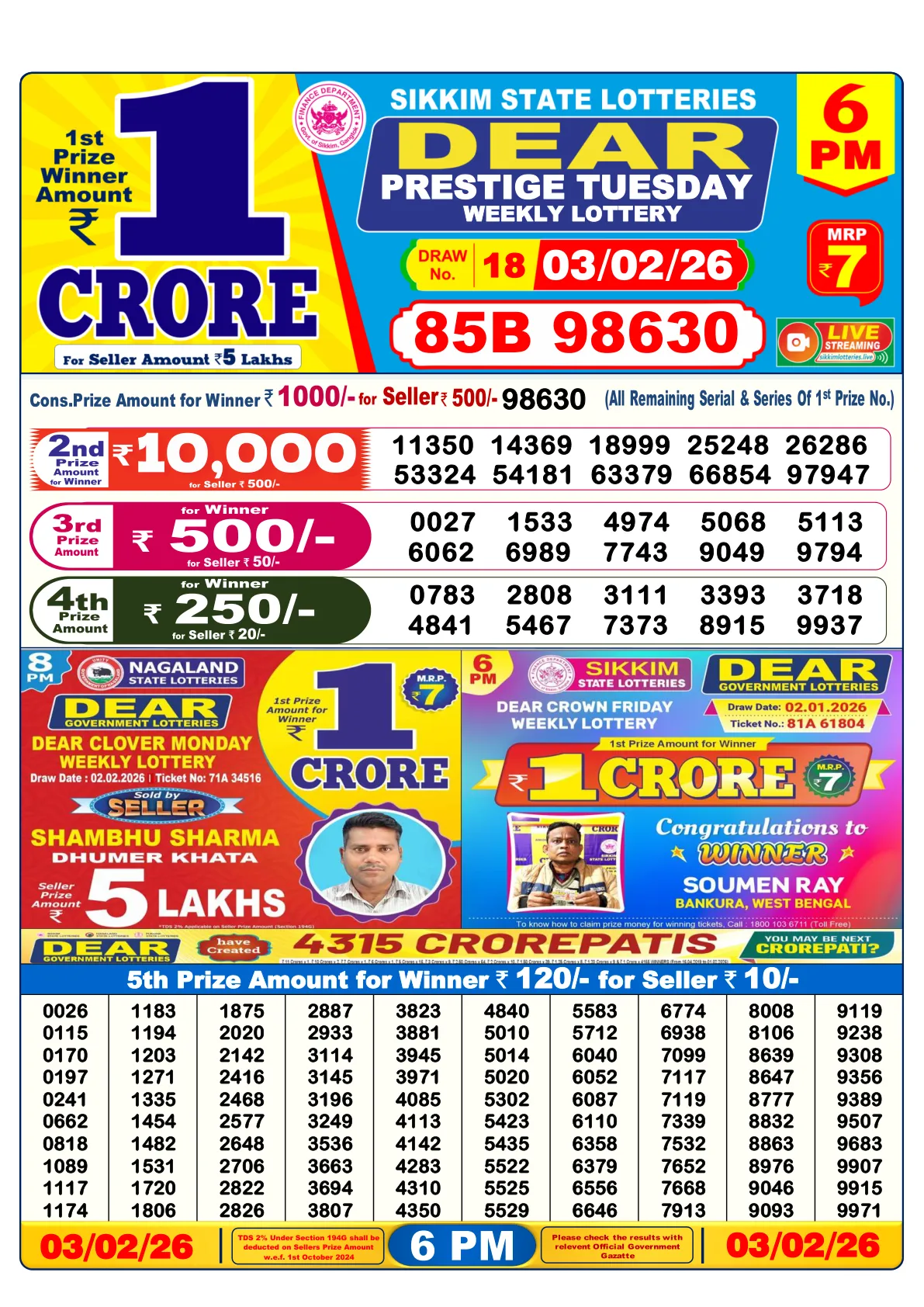The eagerly awaited results for the Nagaland State Lottery – Dear Prestige Tuesday draw, held on 3rd February 2026, have been officially declared, bringing joy and life-changing prospects to many across the country. Excitement filled the air as participants checked their tickets against the winning numbers.